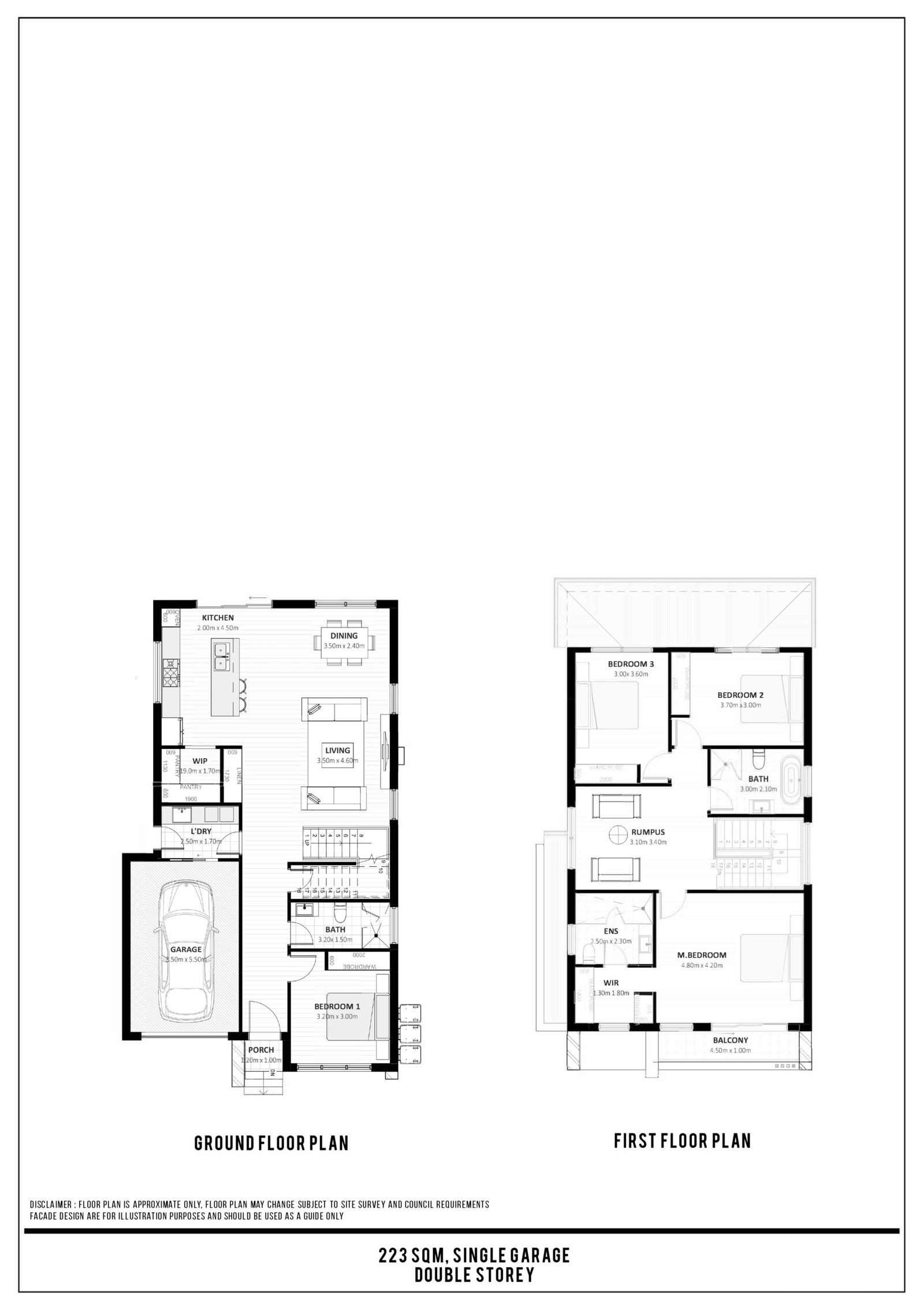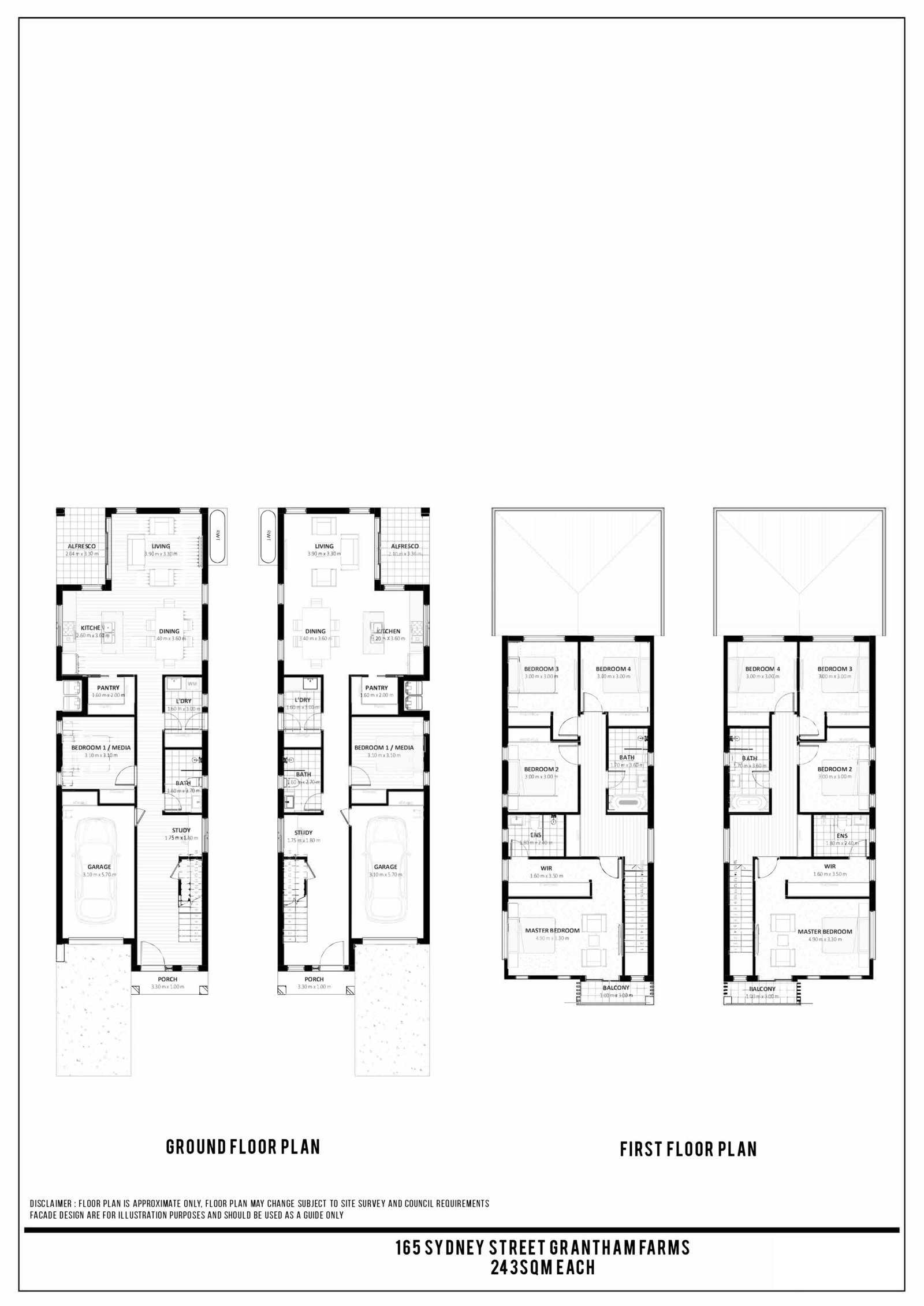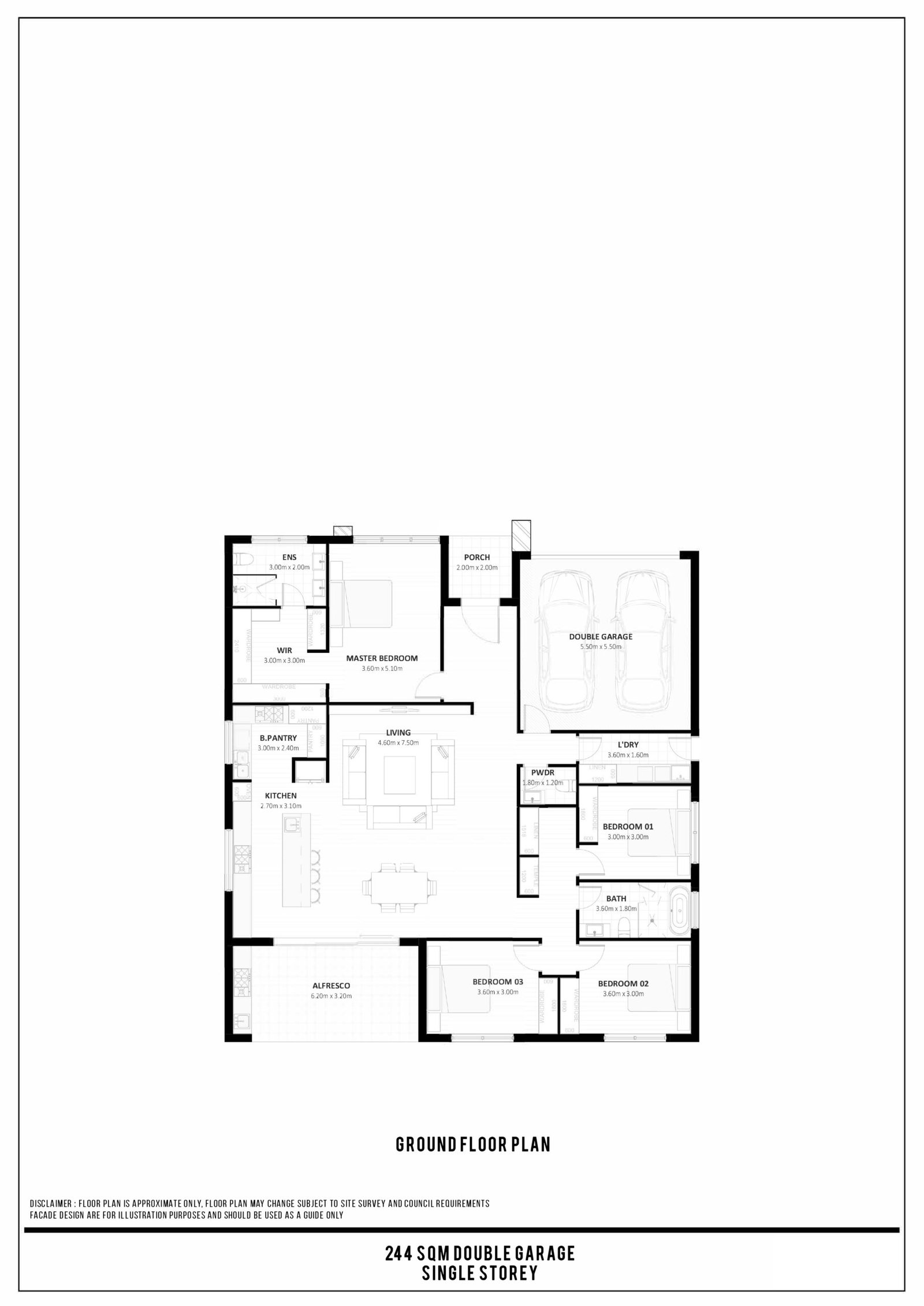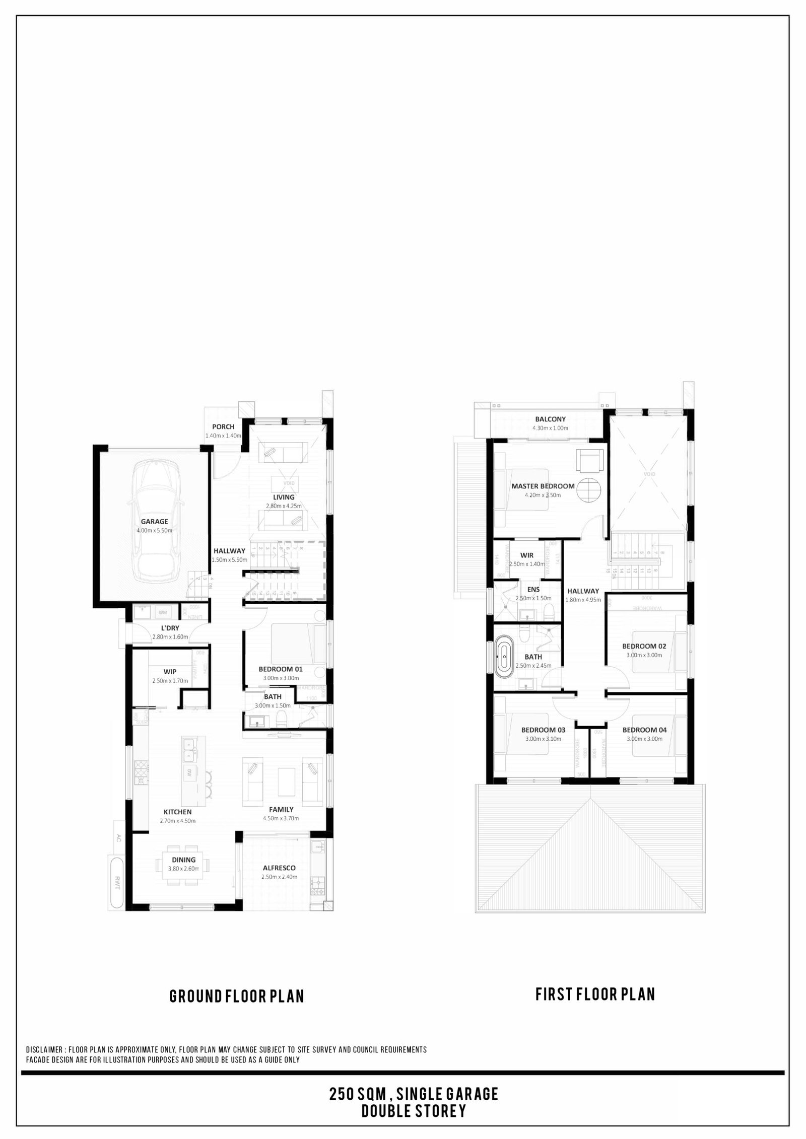 DISCLAIMER : FLOOR PLAN IS APPROXIMATE ONLY, FLOOR PLAN MAY CHANGE SUBJECT TO SITE SURVEY AND COUNCIL REQUIREMENTS. FACADE DESIGN ARE FOR ILLUSTRATION PURPOSES AND SHOULD BE USED AS A GUIDE ONLY.